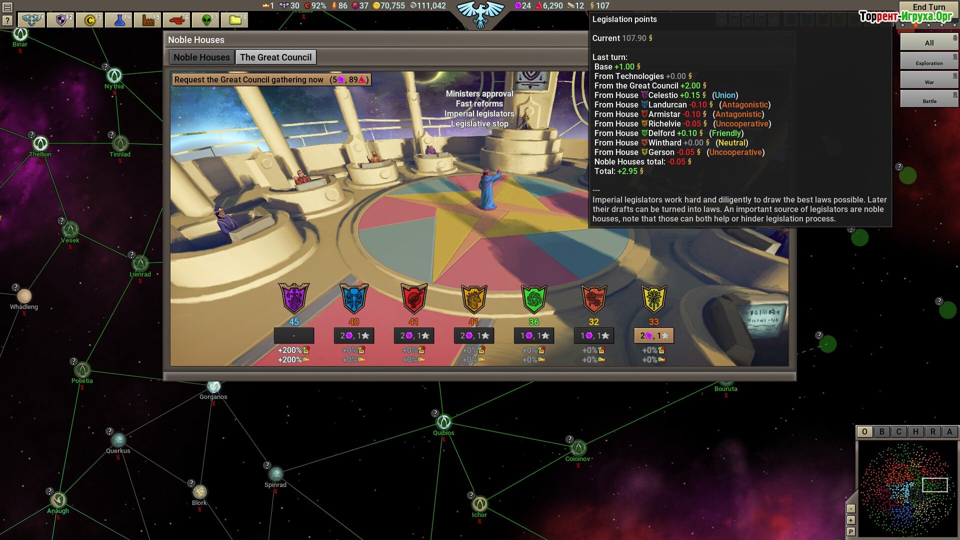 Вместо построения ферм, фабрик или отдельных кораблей, вы будете заниматься более масштабным управлением. Вам предстоит проводить аудиенции, издавать указы, управлять своими дворянами и другими ключевыми фигурами. Прежде чем погрузиться в игру, обязательно скачайте Stellar Monarch 2 через торрент на ваш ПК.