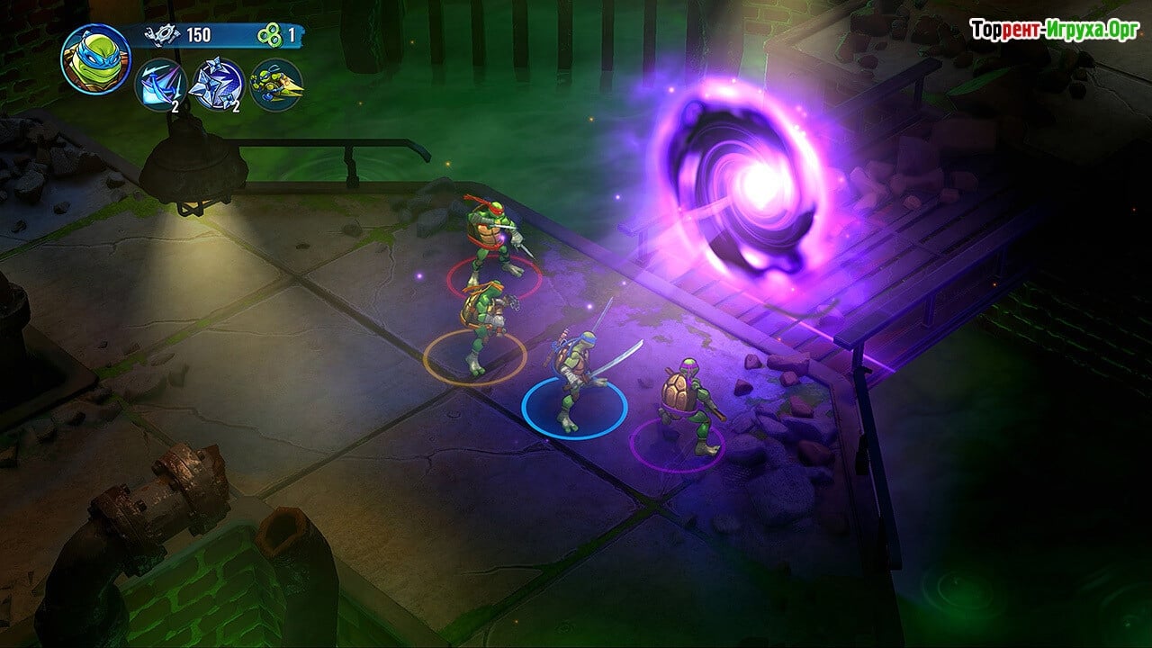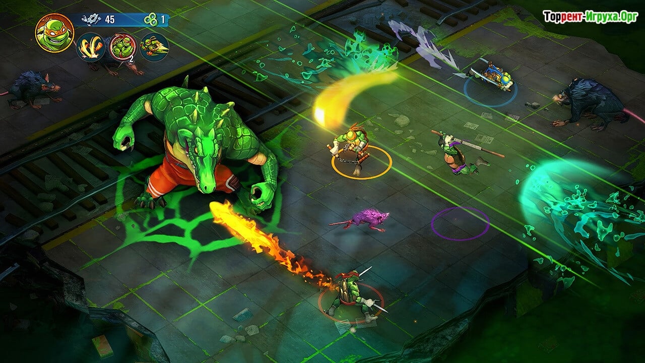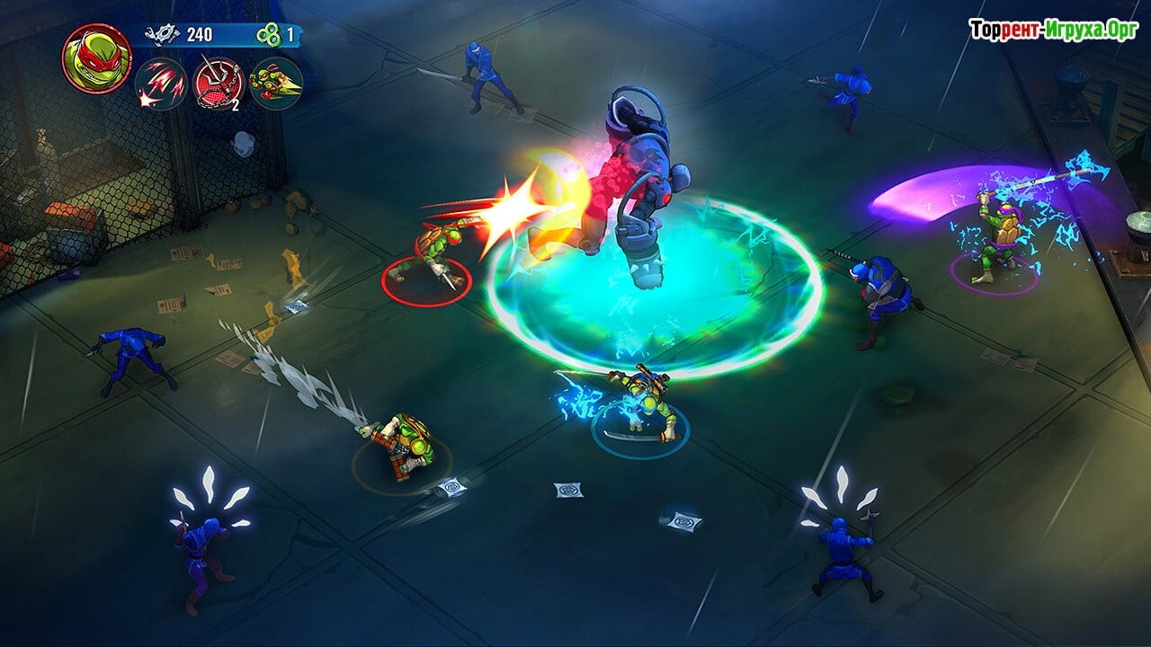 * Возможность играть за каждого из четырех черепашек ниндзя