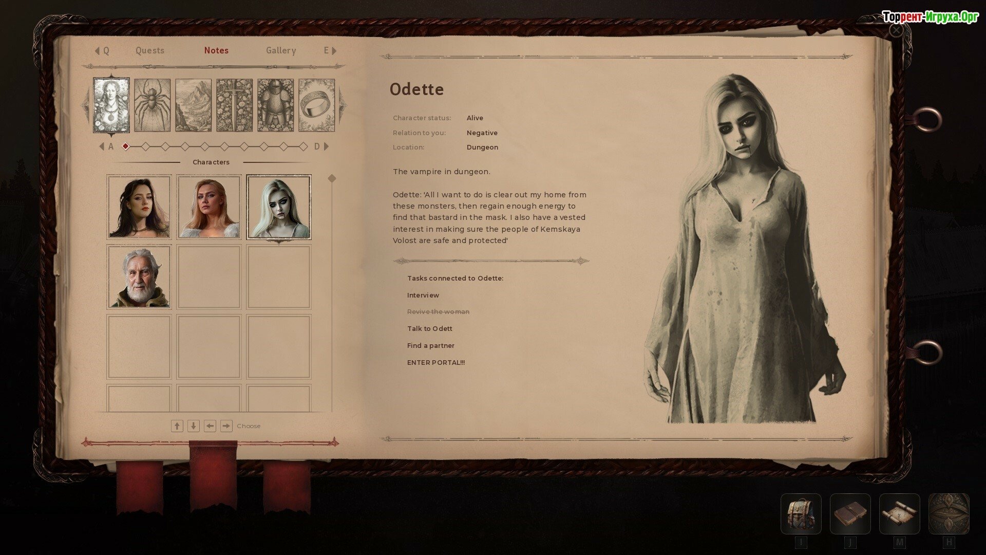 ## Особенности игры * Ролевая игра с элементами хоррора, выживания и менеджмента. * Динамичное развитие сюжета, зависящее от игровых решений. * Возможность выбора пола персонажа (мужчина или женщина) и погружения в разные сюжетные ветви. * Суровый северный мир, где судьба определяется в борьбе с холодом и кровью.