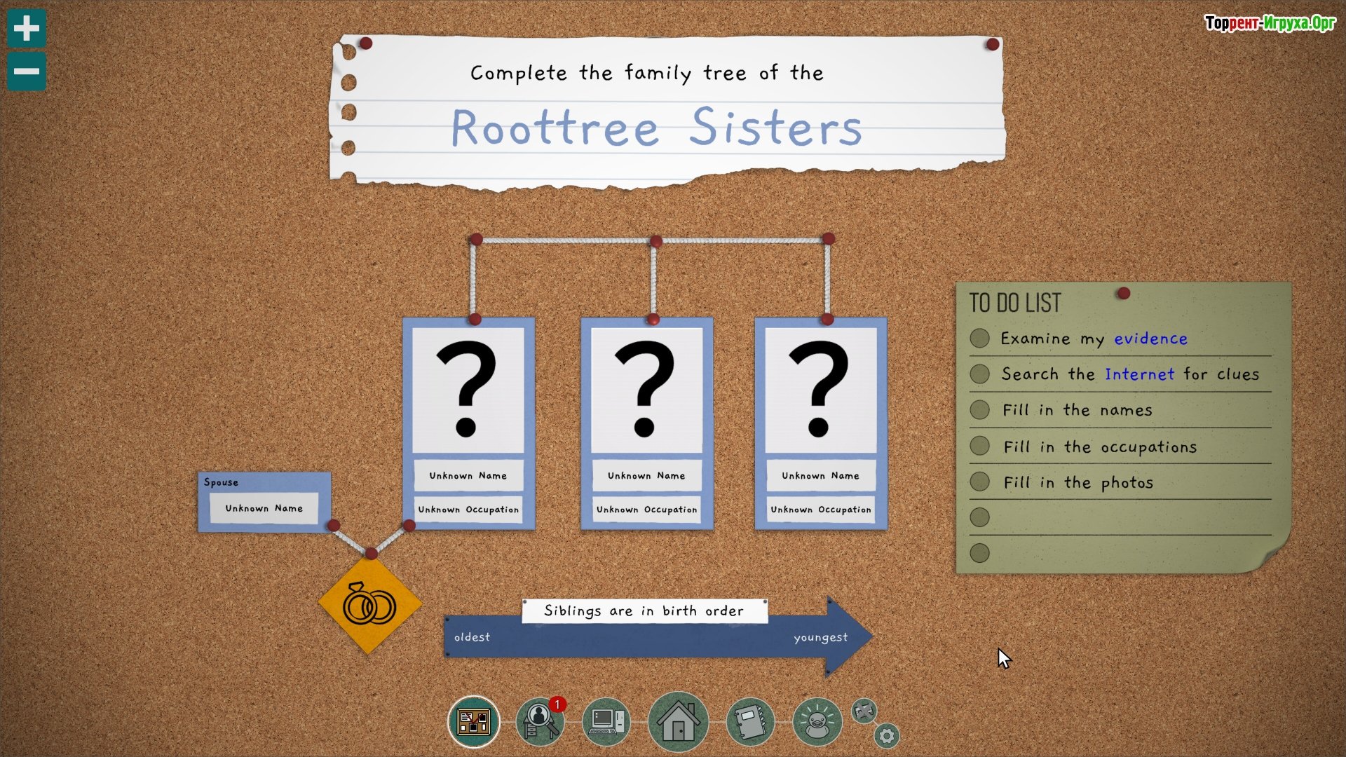 ## Решение головоломки с деталями прошлого В 1998 году потерпел крушение частный самолет корпорации Roottree, и теперь ваша задача – определить, кто действительно является законным наследником. Исследуя разнообразные интернет-ресурсы, старые фотографии и публикации, вы будете собирать доказательства и делать выводы, правильно размещая членов семьи на генеалогическом древе.