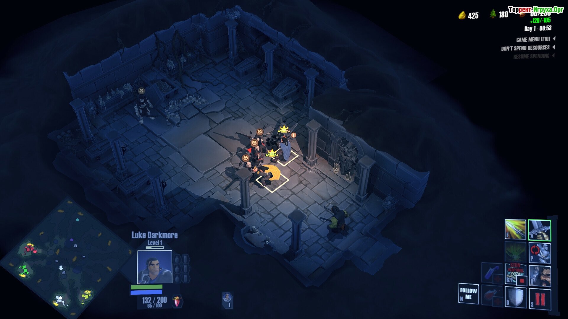 Игровой процесс представляет собой уникальное сочетание стратегии и экшен-RPG с главным героем, чьи судьбы и решения определяют ход событий. ИИ управляет обороной и войсками, освобождая вас для прямого участия в бою. Дни и ночи чередуются с волнами наступающих нежити. Герой прокачивается, получает лут и совершенствует свои боевые навыки.