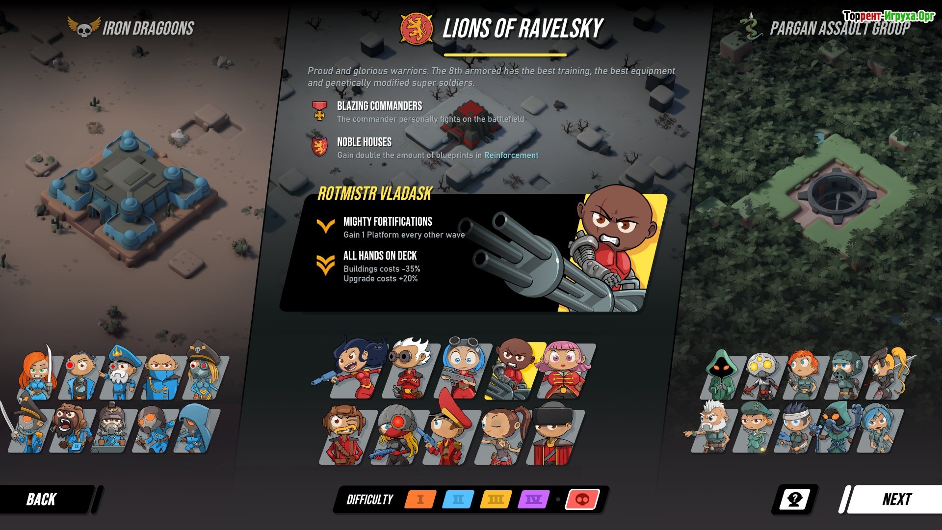 С каждым новым этапом игрового процесса происходит улучшение обороны и героев.