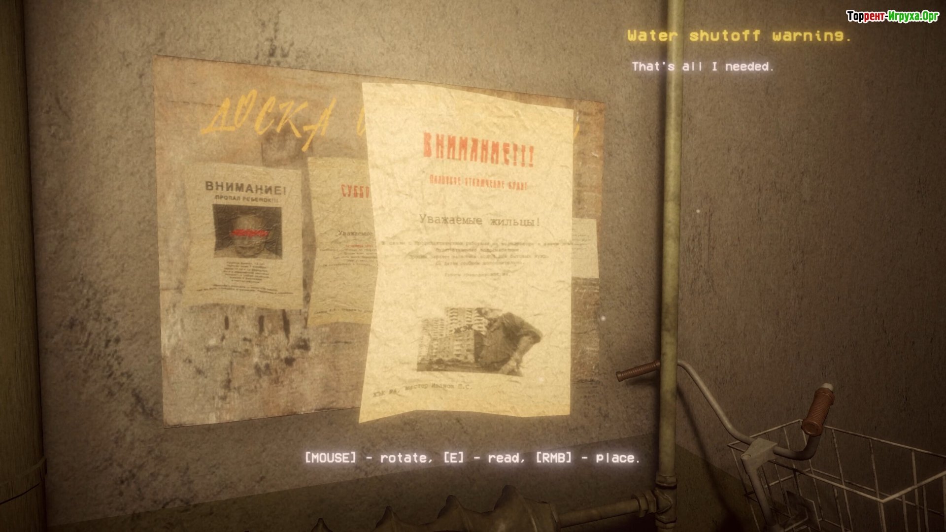 * Атмосфера постсоветской России. * Интерактивное окружение и множественные детали. * Сюжет, основанный на реальности, без элементов мистики. * Несколько концовок, зависящих от сделанных игроком выборов.