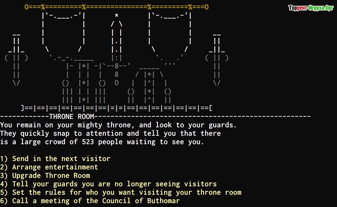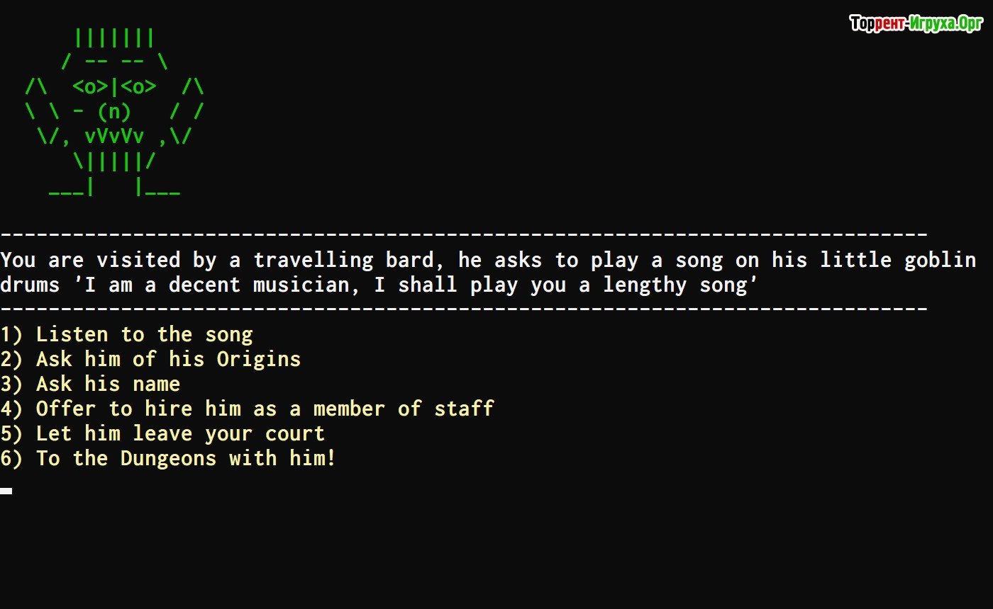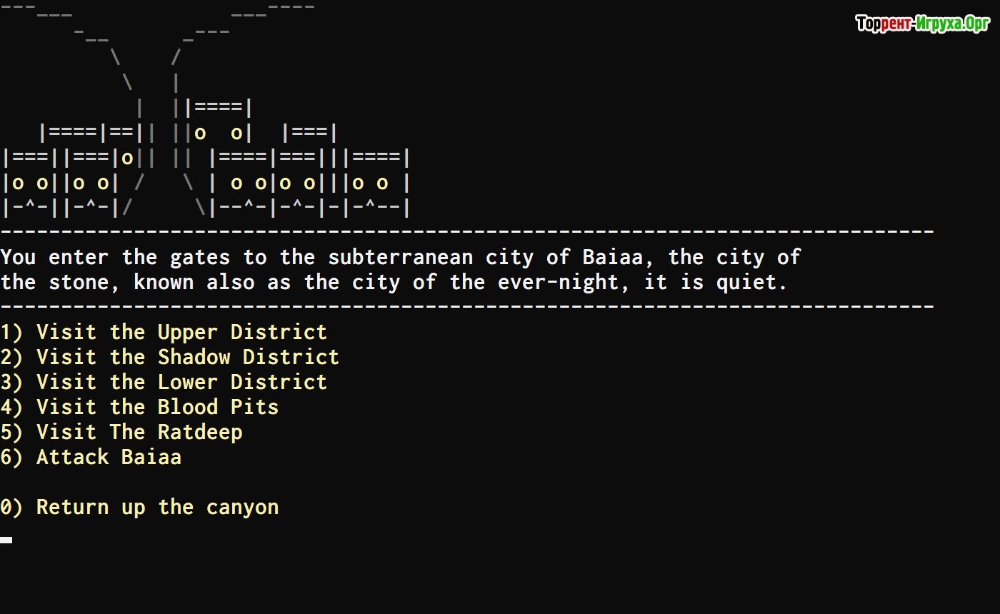 ## Особенности игры * Погружение в мир происходит благодаря детализированным текстовым описаниям, позволяющим игрокам создавать яркие образы каждой локации и ситуации. * Каждое прохождение уникально благодаря случайно генерируемым событиям и встречам, что обеспечивает разнообразие и реиграбельность. * Игроки могут настраивать своего персонажа, выбирая из множества классов и специализаций, что позволяет адаптировать стиль игры под личные предпочтения. * Ваши решения оказывают непосредственное влияние на ход истории, позволяя игрокам принимать важные стратегические шаги и формировать уникальные сюжетные линии.
