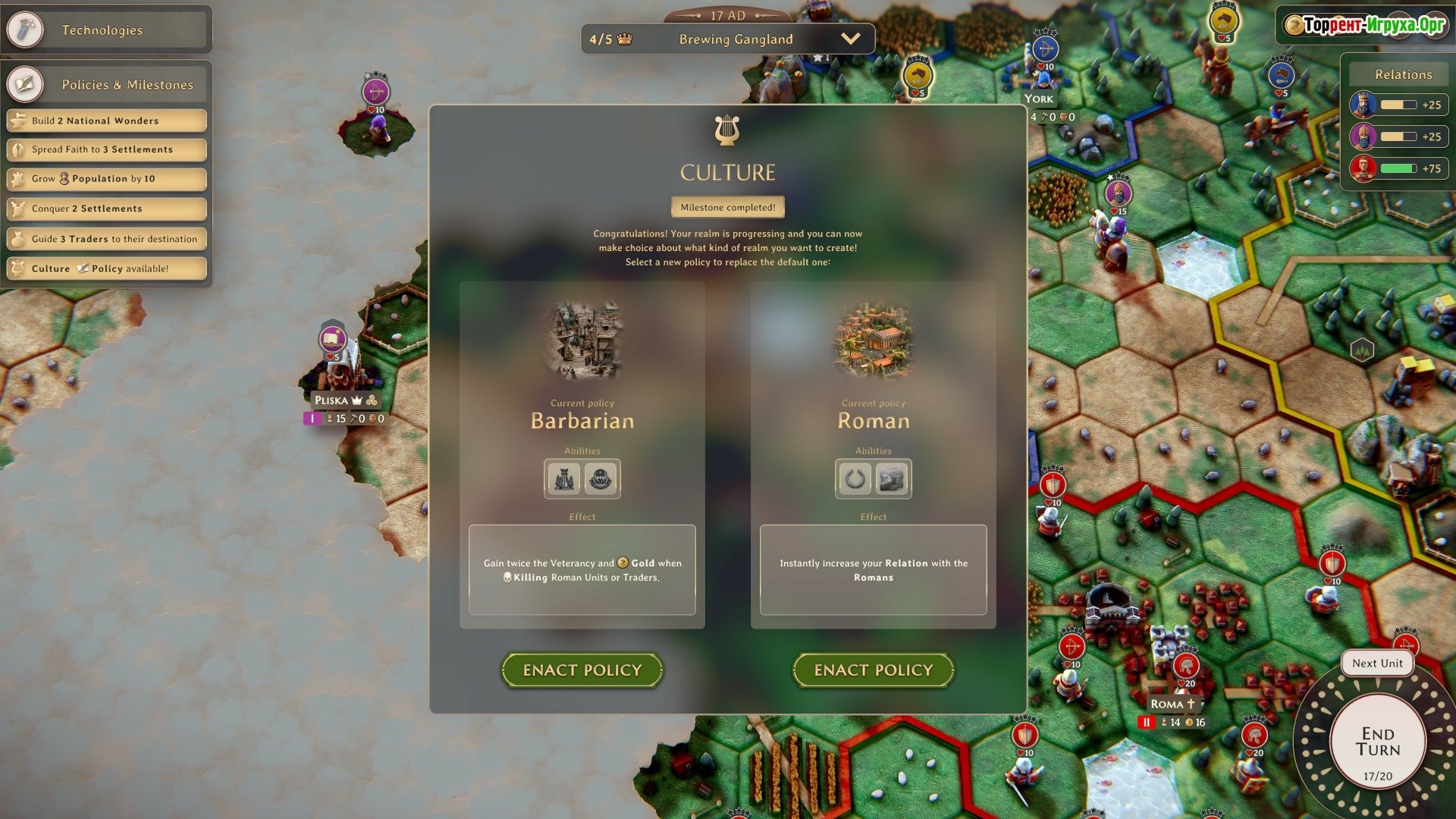 Игровой сюжет Действие разворачивается в 401 году н.э. Весенний воздух уже наполнен предчувствием весны, хотя солнце уже склоняется к закату. Кажется, обычная ночь у берега Рейна, но скоро падет самая долговечная империя этого мира – Римская. Это типичная 4X-стратегия, дополненная динамичным тактическим геймплеем. Вы попадете в эпицентр краха Римской империи, где вам предстоит захватывать провинции, постепенно расширять свою власть и переживать трагичность последних дней Древнего Рима. Готовы испытать весь спектр эмоций?