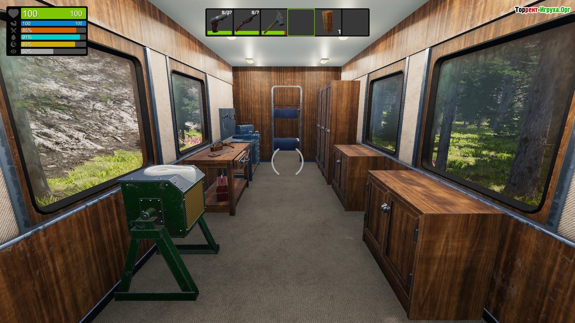 Одна часть поезда отвечает за передвижение, а вторая (вагон) — за все остальное. В вагоне вы можете улучшать свое жилище, приносить туда новые предметы, отдыхать, создавать вещи, восстанавливать здоровье. Снаружи поезд тоже можно укреплять металлоломом, шипами, острыми копьями и так далее.Особенности игры: